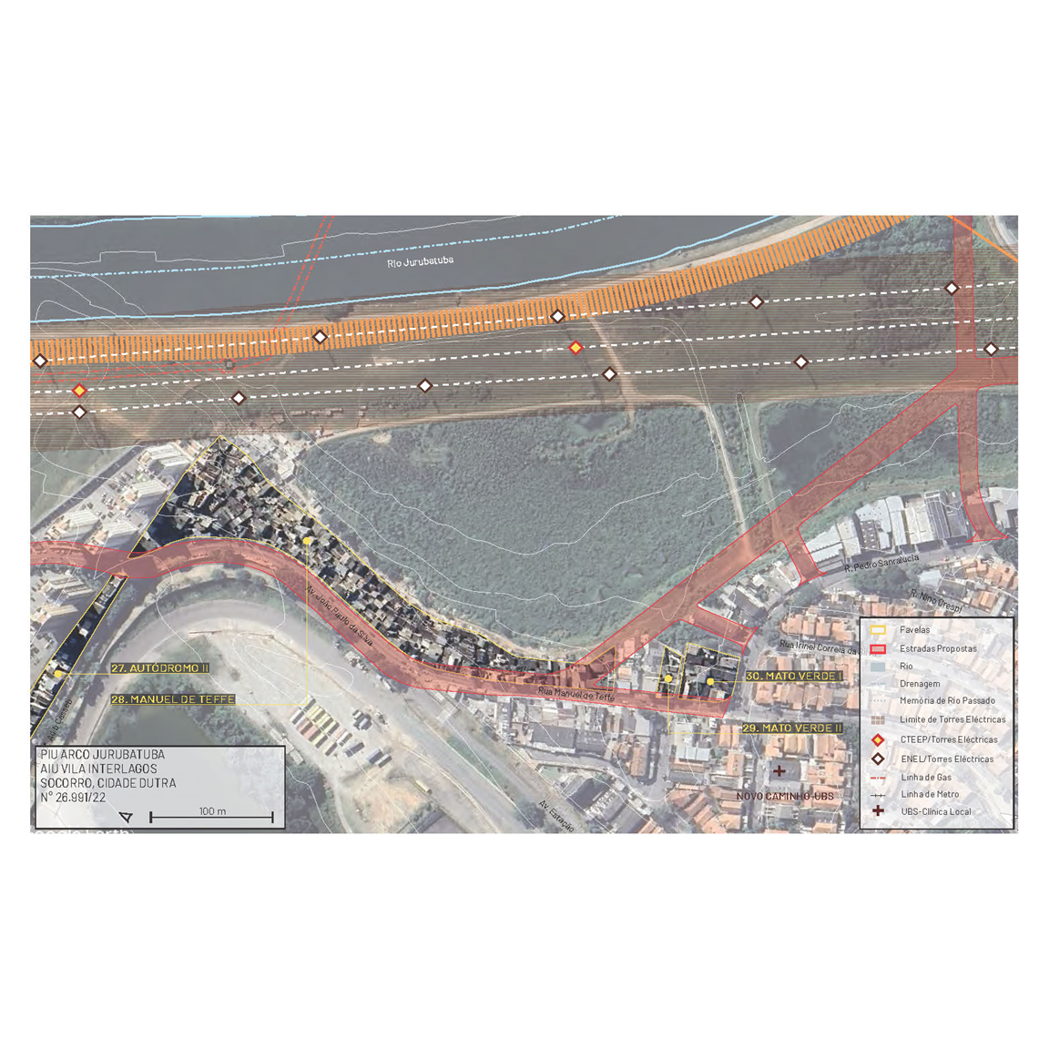 The Interlagos Urban Intervention Area (AIU) is set within a 376-hectare perimeter, is home to the José Carlos Pace race track, host of the Brazilian Grand Prix, and has lower building densities, more open space and remnants of cattle grazing and green areas along the river. The main objective of AIU IN is to integrate the Autódromo with its surroundings through a series of public interventions. Local communities will be impacted by the extension of the Marginal Pinheiros, the creation of new parks and squares, environmental axes, cycle paths over rivers and streams and drainage beds.