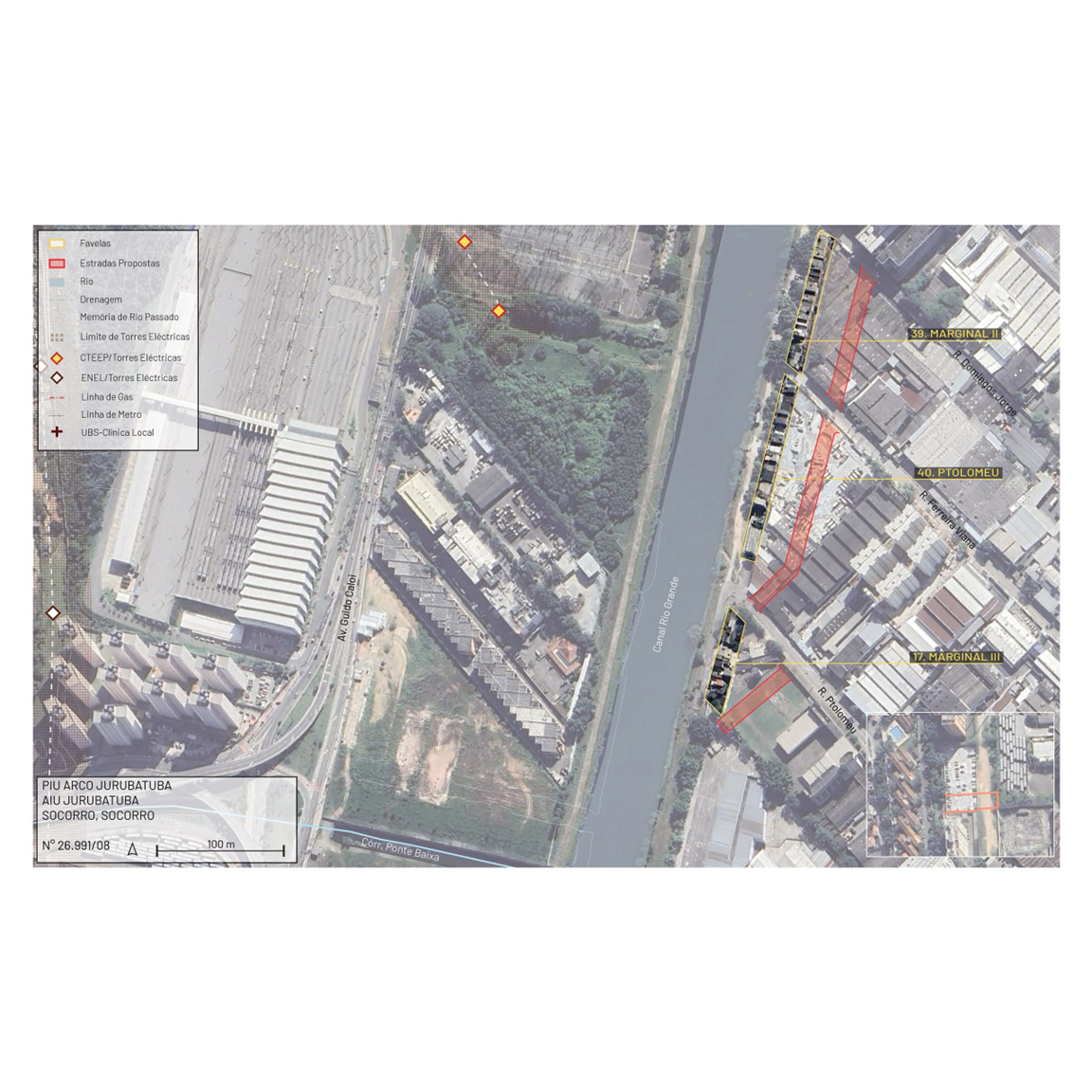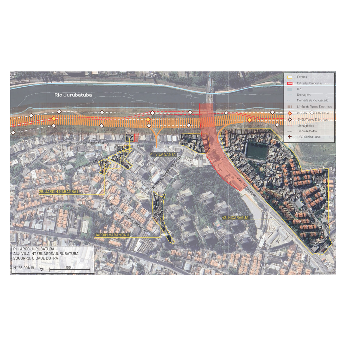AIU Jurubatuba includes two important metropolitan centralities: the metropolis' largest employment and services hubs (Faria Lima, Luís Carlos Berrini and Chucri Zaidan) and the dense area characterized by Santo Amaro Avenue and Line 5 Lilac of the Metro. The AIU JU aims to expand densification along the Jurubatuba River and the Guarapiranga Canal. In this area, the expansion and creation of new roads, such as the extension of the Marginal Pinheiros, will improve connectivity, but will also impact existing communities. Other public works include park interventions, drainage improvements and the expansion of bicycle infrastructure.